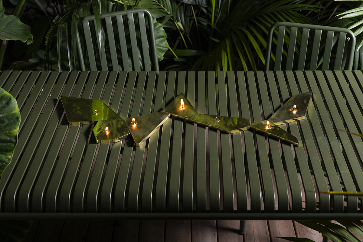 From the collaboration between Catalina D’Anglade and Daniel Steegmann comes the work entitled “Φωτιά” . It consists of a set of 7 oil lamps designed by the artist.